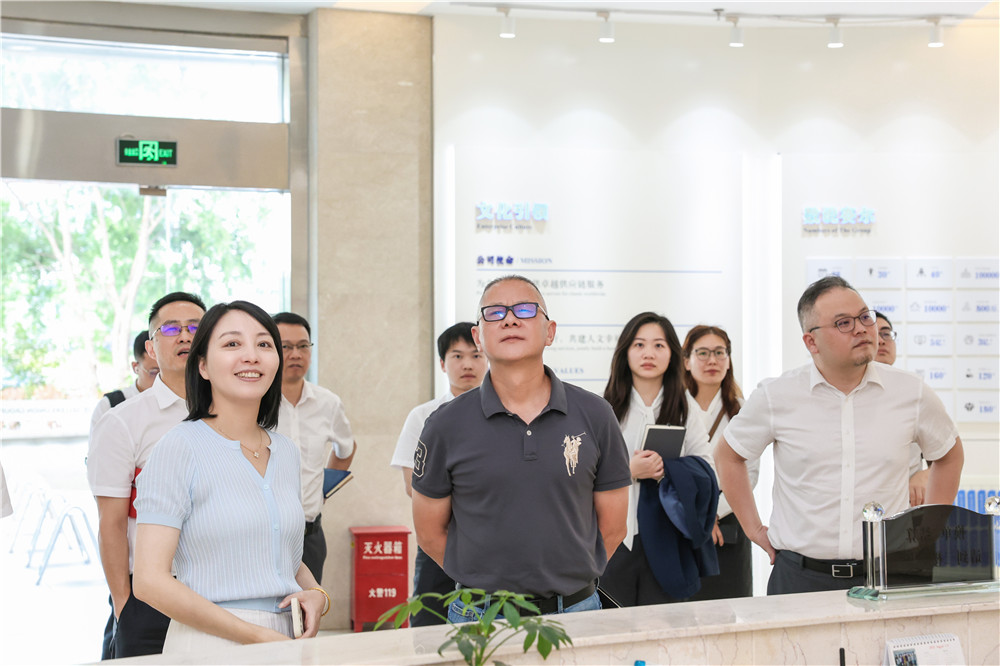 殷劍峰一行首先參觀了集團企業文化展廳,伍淑亞副總經理詳細介紹了集團的發展歷程、業務模式、文化理念等方面,重點闡述了賽爾在全球貿易鏈條中的定位、主要業務板塊、生態圈賦能舉措以及合伙人機制的管理特色。