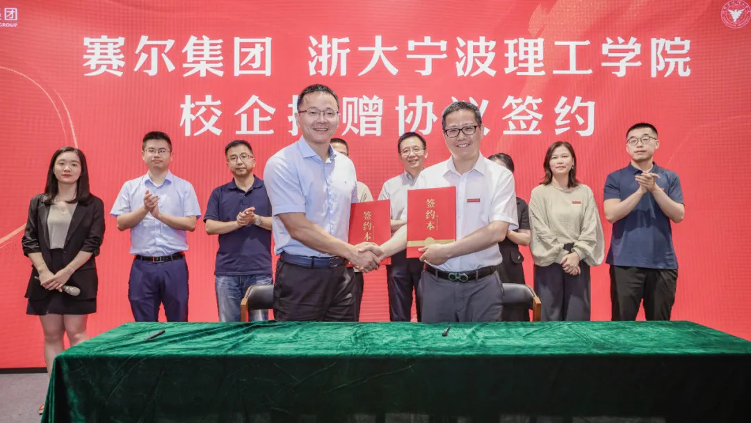 賽爾集團向浙大寧波理工學院捐贈300萬元,設立“賽爾基金”?;饘⒅饕糜谥С謱W校人才培養、校友企業優秀企業文化案例研究、以及學校基礎設施建設和場地改造等。捐贈協議和校企合作協議由賽爾集團總裁助理馬科成、浙大寧波理工學院副校長、教育發展基金會理事長魯東明共同簽署。賽爾集團董事長徐平炬、浙大寧波理工學院校長楊德仁見證捐贈儀式。浙大寧波理工學院相關部門領導和賽爾集團部分高管參與見證。